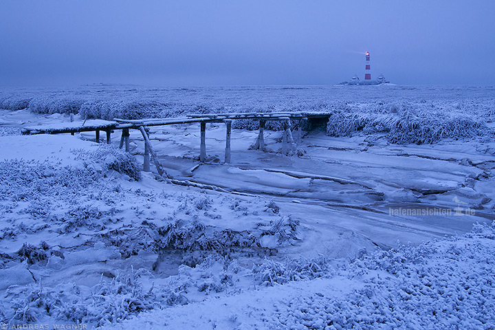 Der kalte Winter 2010 verzauberte Norddeutschland in eine märchenhafte Eislandschaft. Das Watt rund um den Leuchtturm Westerhever war komplett vereist.